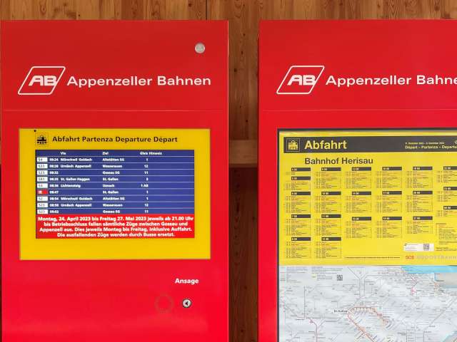 Die AB haben aus Altersgründen das Kundeninformationssystem der Fahrzeuge BDeh 3/6 Nr. 25 (Linie Rorschach–Heiden), BDeh 4/4 Nr. 16 und 17 und ABt 116 und 117 (Linie Altstätten–Gais) ersetzt. Damit wird auch die Zuverlässigkeit und Verfügbarkeit verbessert.
