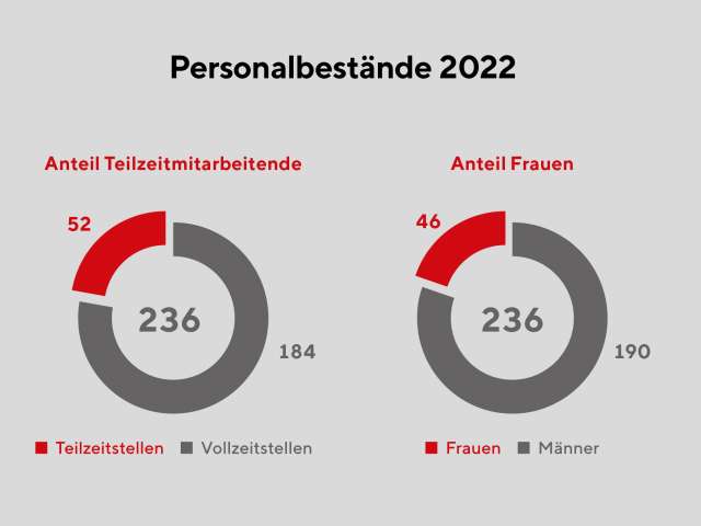 Am 31. Dezember 2022 waren 236 Mitarbeitende bei den AB angestellt und haben mit ihrem grossen Engagement zum Erfolg des Unternehmens beigetragen. Der Frauenanteil lag bei 19.5 %.